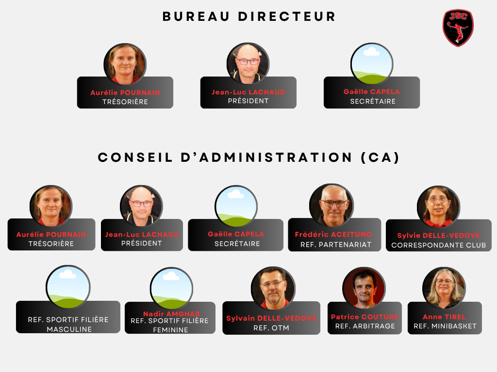 Chacune des instances est composées de bénévoles du club (Référents ou responsables de pôles), qui assurent l’ensemble des missions liées à la gestion, au développement et à la promotion du club. Ce sont les principaux garants du bon fonctionnement de l’association et de la vie du club. Ils veillent à ce que tous les licenciés (joueurs, entraineurs, bénévoles) évoluent tout au long d’une saison dans un cadre convivial et familial. Des moyens matériels, logistiques et financiers sont mis à leur disposition chaque année afin de s’assurer que leur saison se déroule dans les meilleurs conditions. C’est lors de l’Assemblée Générale que toute l’équipe dirigeante présente à ses adhérents un bilan de l’année écoulée.